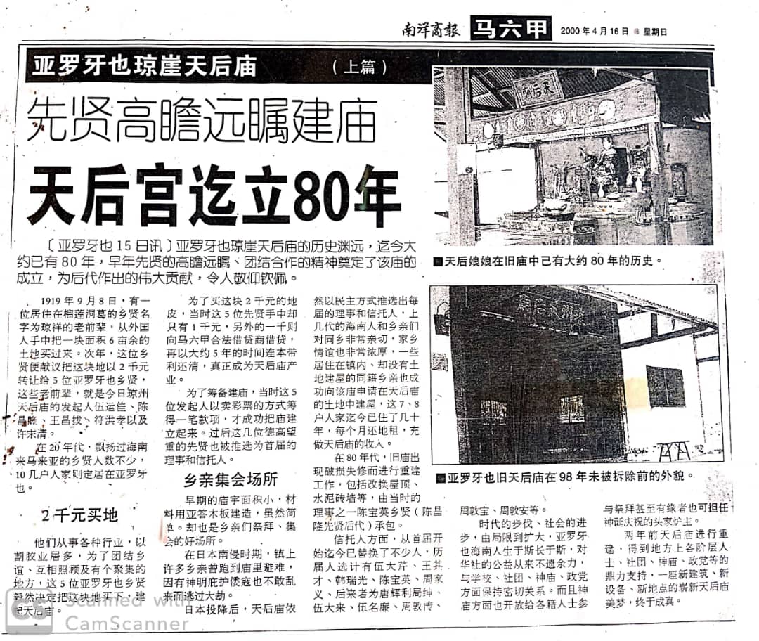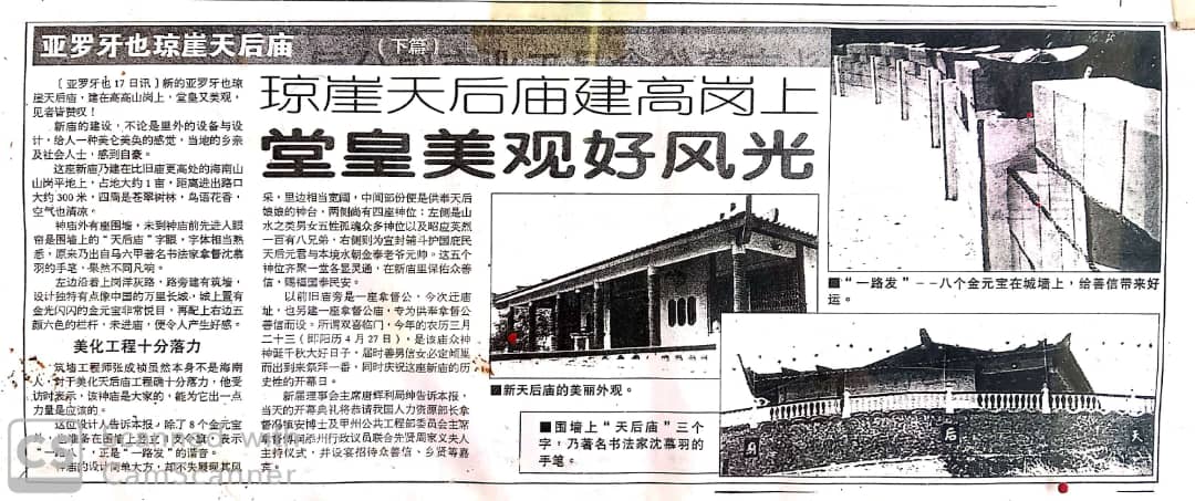 琼州天后庙剪报 OUR NEWSPAPAER GALLERY